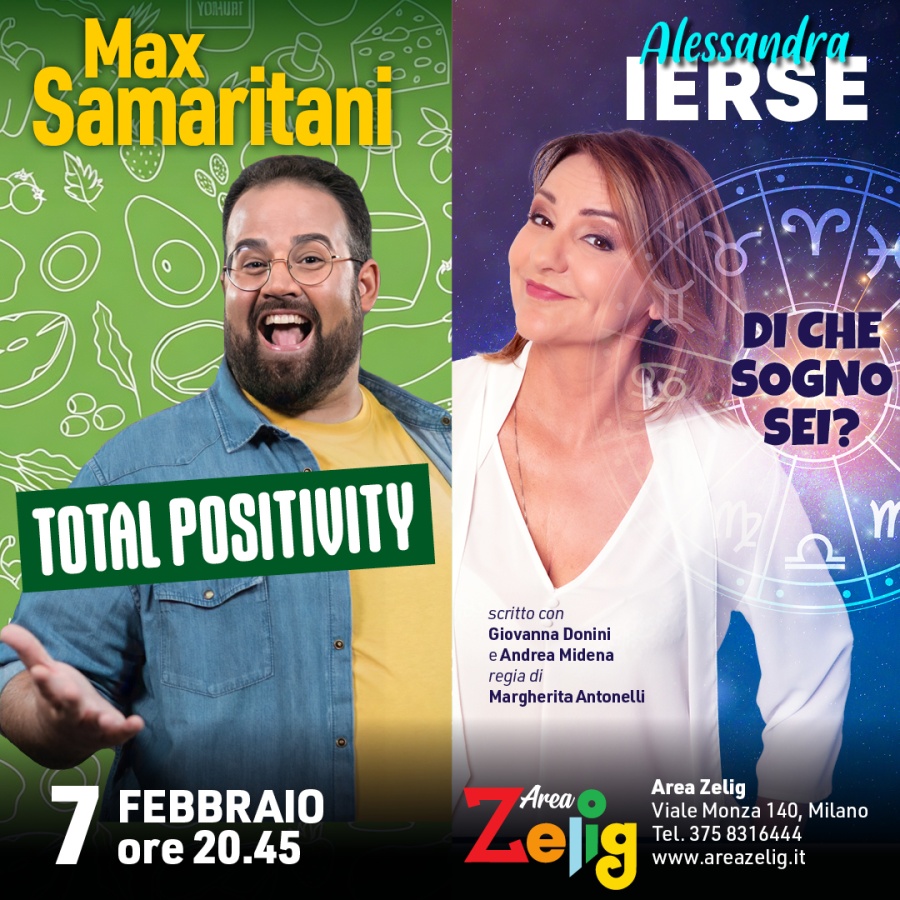 Tutti conosciamo la Body Positivity, ma che cos'è la TOTAL POSITIVITY? Max Samaritani si racconta e ci racconta la sua filosofia di vita, uno sguardo comico che unisce corpo, cuore e mente con la linea di un sorriso e con quel “q. b.” di consapevolezza che permette di riflettere e di divertirsi con morbidezza ed energia. Lo spettacolo porta in scena ricordi, situazioni e pensieri sul rapporto con il corpo e con la propria immagine, sul peso di parole e pregiudizi, sulla salute e lo stare bene, su grassofobia e società, sulle gioie e le fatiche di tutti i giorni ... ma tranquilli: si parla anche di sushi. E si balla. TOTAL POSITIVITY è un flusso comico di coscienza, un giro attorno alla vita - in tutti i sensi! - con leggerezza - non in tutti i sensi! -, un'ondata di colori ed (auto)ironia che abbraccia tutti. Perché, come si dice, HAPPINESS IS REAL … ALL YOU CAN EAT!