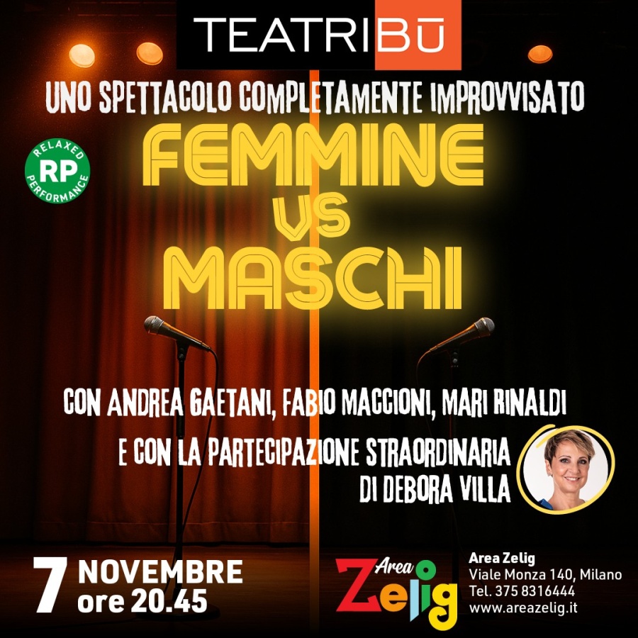Debora Villa — attrice, comica e improvvisatrice tra le più amate (Camera Cafè, Zelig, Le Iene, Comedy Match) — torna sul palco insieme a Teatribù per una serata dove nulla è scritto e tutto può accadere.