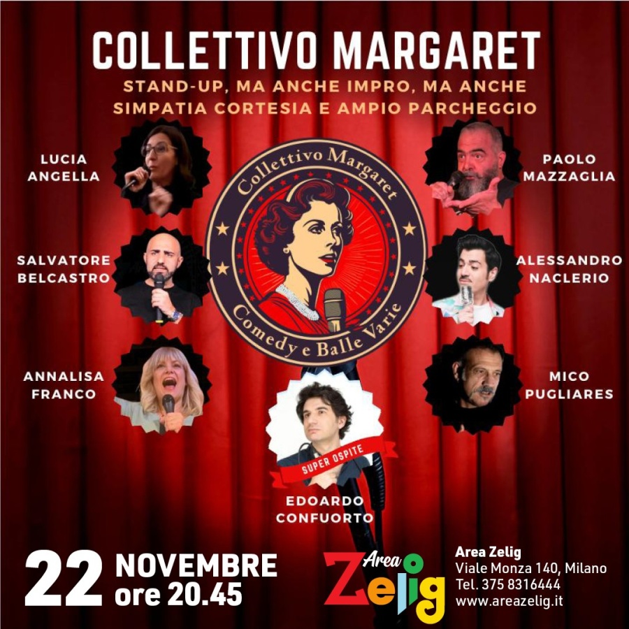 Sei comedians, un palco e tante risate! Una serata di puro divertimento quella del Collettivo Margaret. Saranno mescolati pezzi originali e improvvisazione come fossero pomodoro e mozzarella in un'esperienza unica, diversa e succulenta come solo una serata di comicità o una pizza margherita sanno essere.